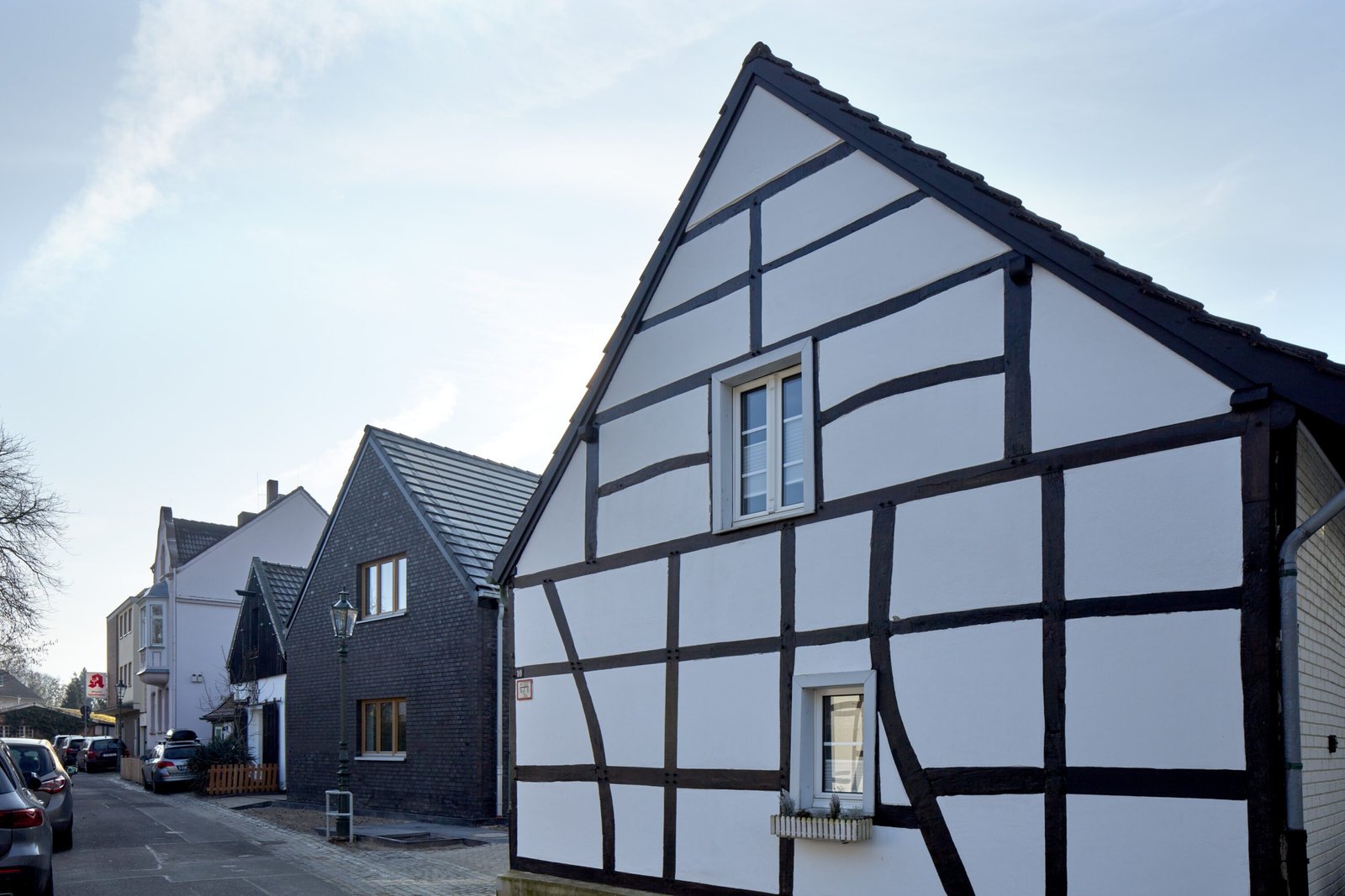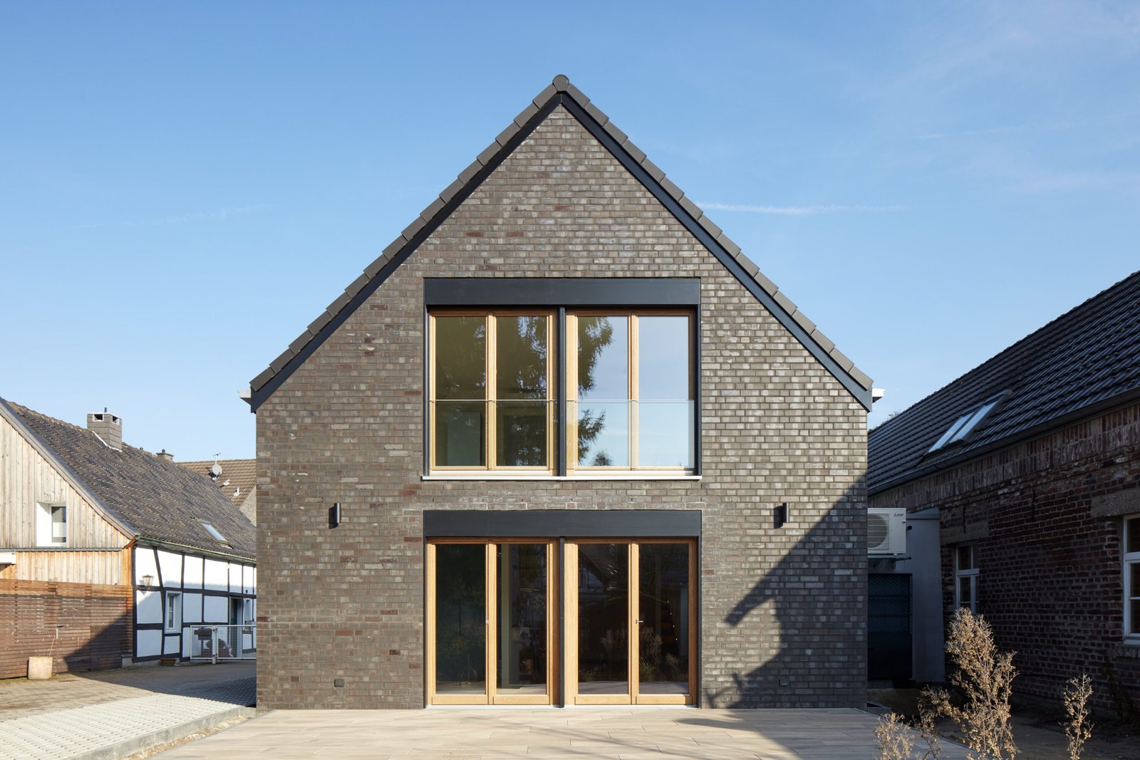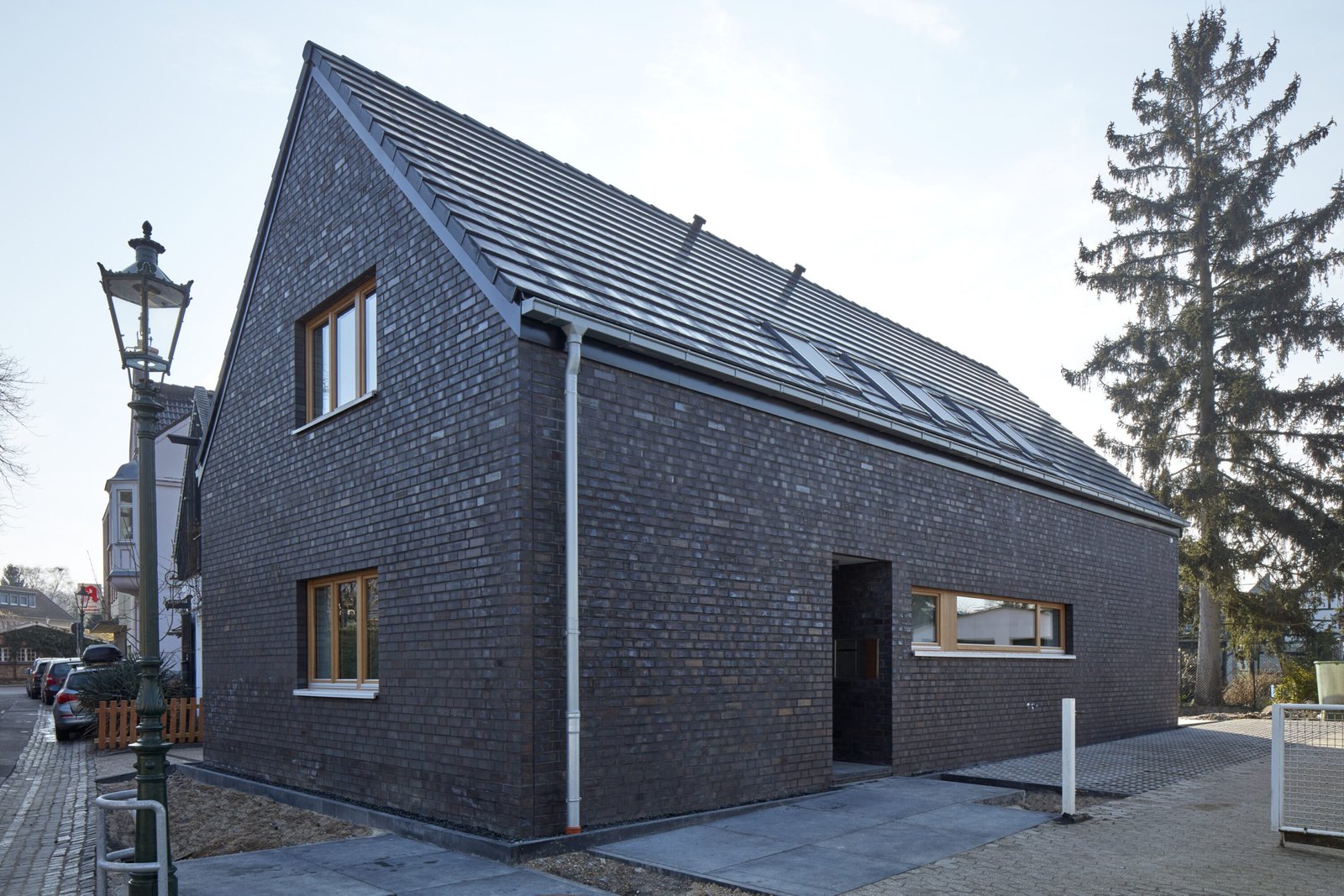 Im historischen Kern von Düsseldorf-Urdenbach fügt sich ein neu errichtetes Einfamilienhaus sensibel in die von giebelständigen Fachwerkhäusern geprägte Umgebung ein. Die traditionelle Bauform wird aufgenommen und zeitgemäß interpretiert: Ein schlichtes Satteldach ohne Gauben oder Aufbauten bewahrt die ortstypische Silhouette und verleiht dem Gebäude eine klare, ruhige Erscheinung.