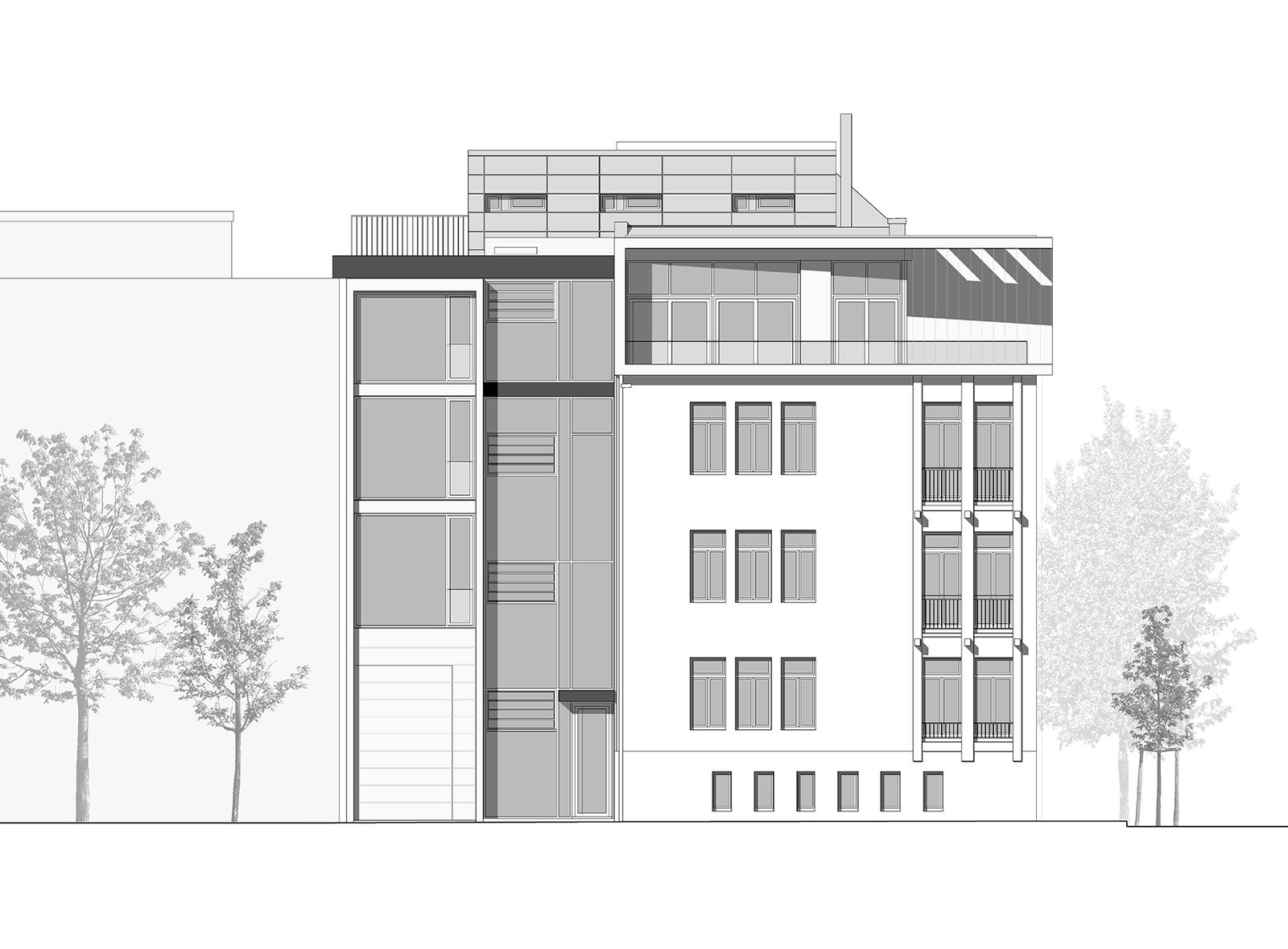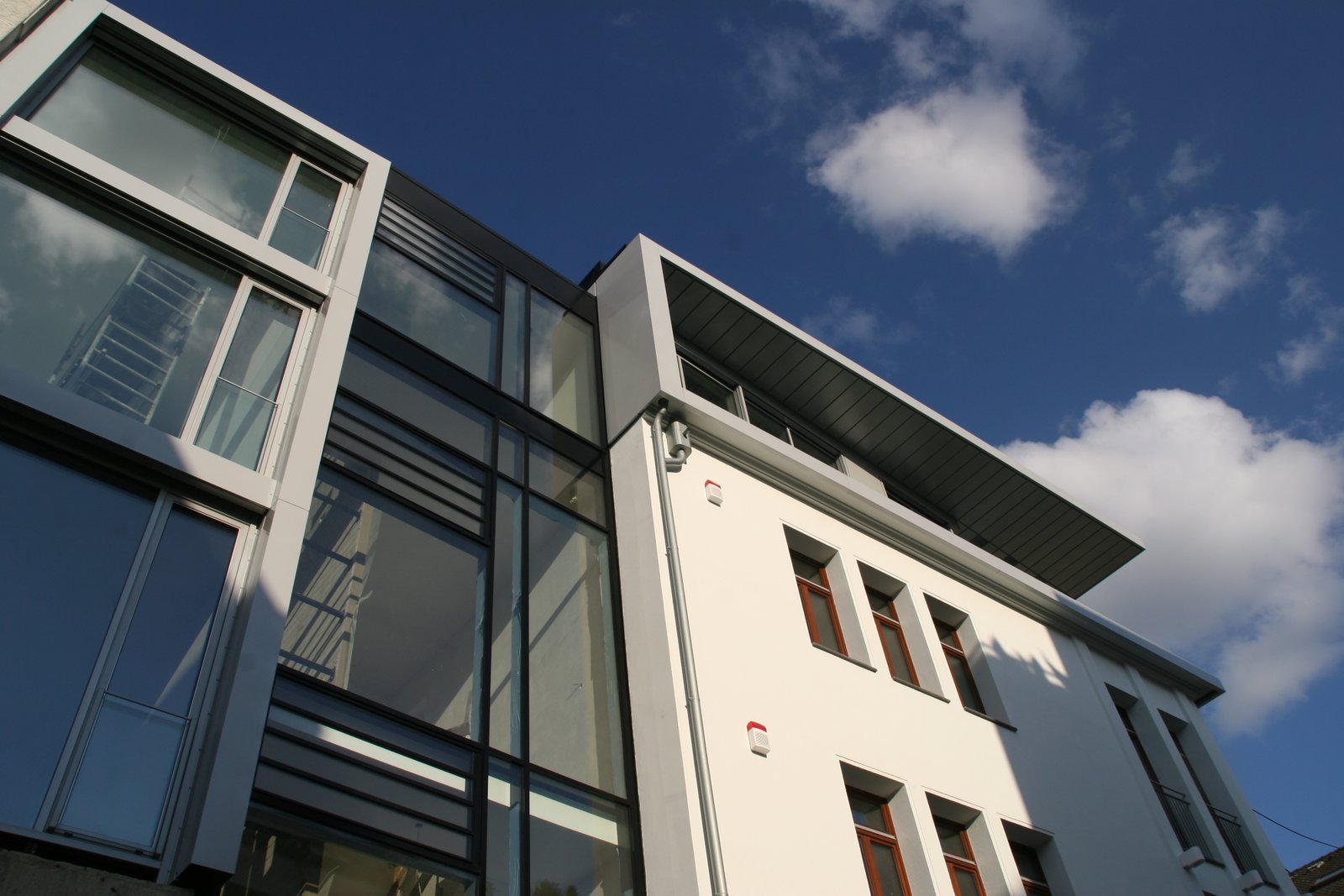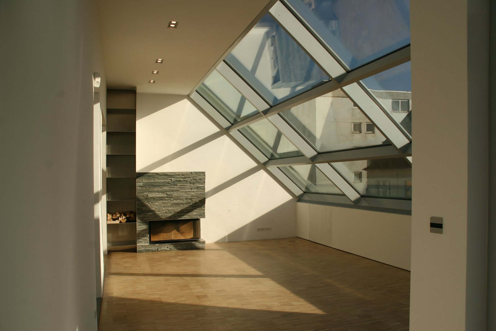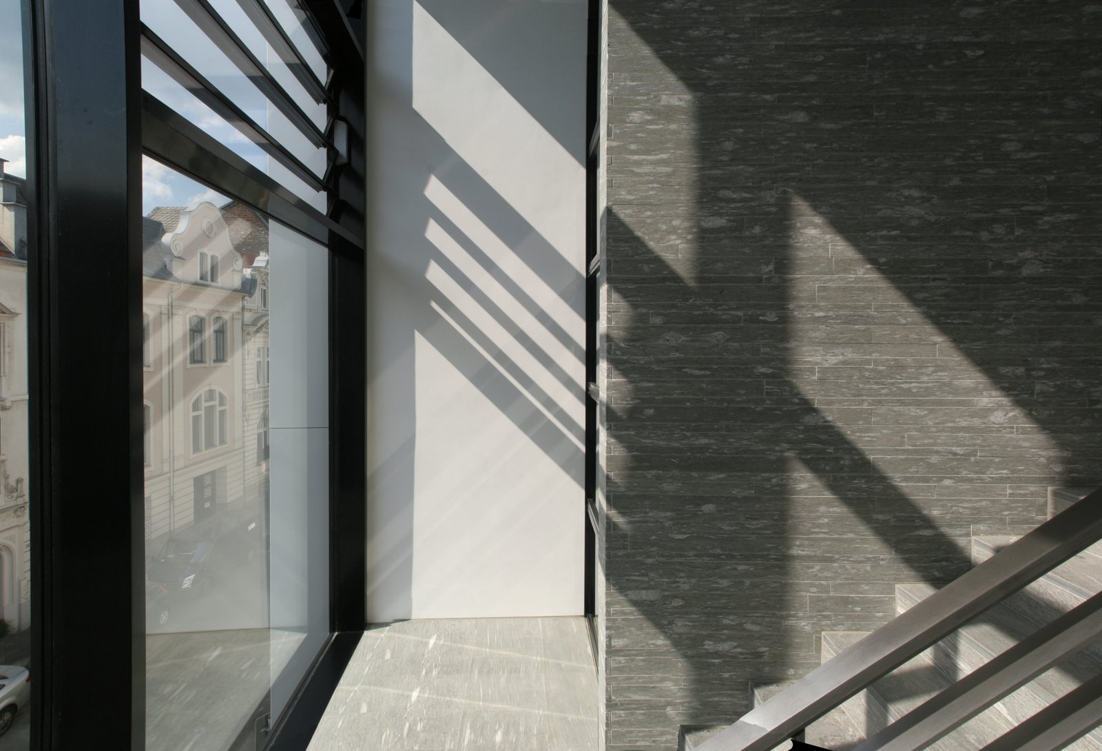 In den unteren drei Geschossen entstanden moderne Büroflächen, untergebracht im Altbauteil des Gebäudes. Der Neubau nimmt den vollflächig verglasten Treppenraum sowie alle Sanitär- und Technikräume auf. Im 3. Obergeschoss und Dachgeschoss entstand eine weitläufige Penthouse-Wohnung.