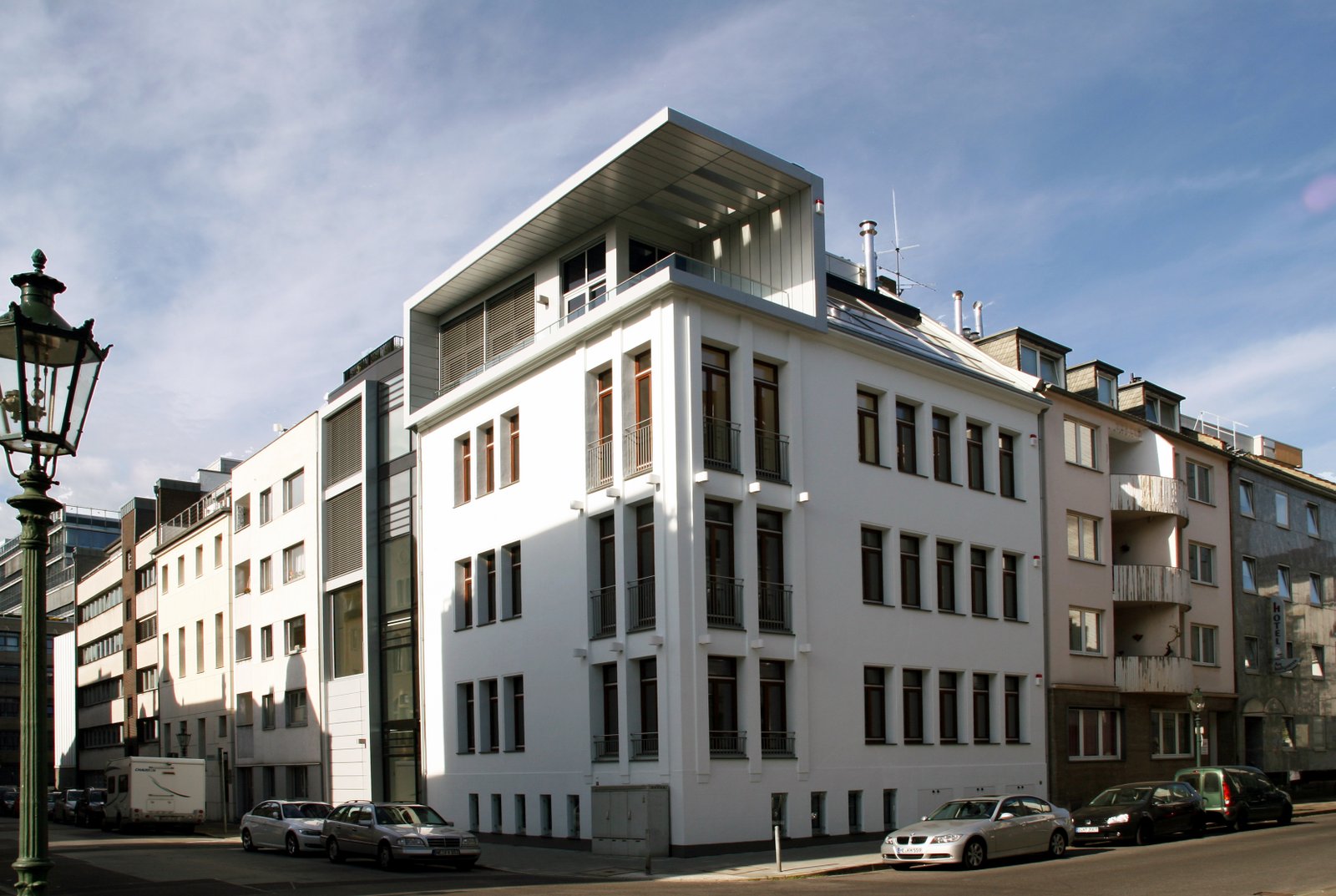 Umbau und Erweiterung eines ehemaligen Hotels zu einem Bürogebäude mit Penthouse-Wohnung