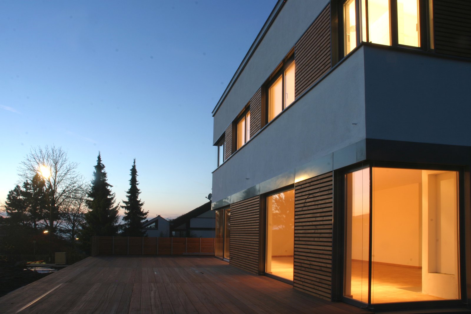 Auch die Fassade spiegelt dieses Konzept wider: Die Nordseite ist bewusst geschlossen gestaltet, um Privatsphäre und Schutz zu bieten. Im Kontrast dazu öffnet sich die Südfassade mit großen Fensterflächen zum Garten und zur Landschaft, wodurch Innen- und Außenräume miteinander verschmelzen.