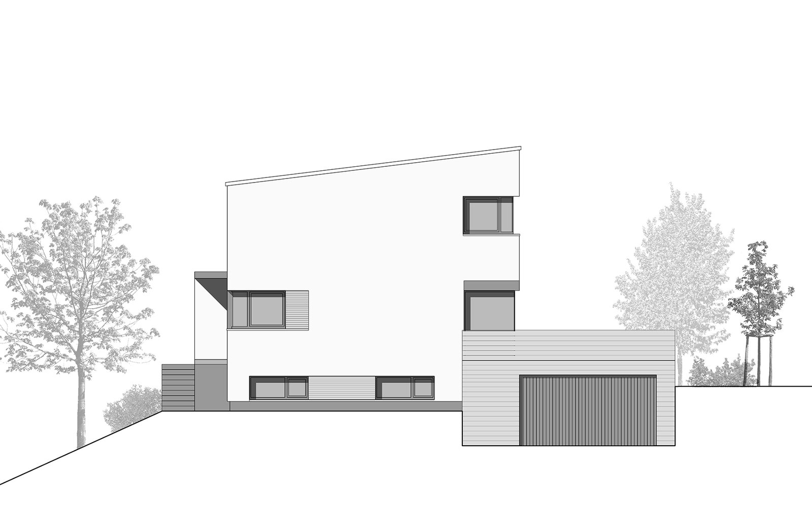 Neubau eines Wohnhauses auf einem Hanggrundstück