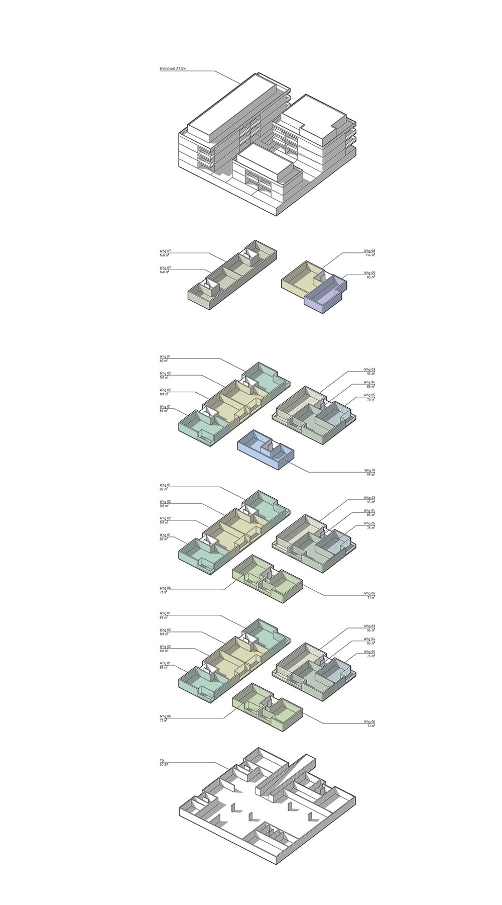 Das energetische Konzept umfasst geothermische Wärmepumpen und Photovoltaik, wodurch eine nachhaltige Wärme- und Stromversorgung sichergestellt wird. Die modulare Bauweise ermöglicht eine schrittweise Realisierung, sodass bestehende Strukturen sukzessive und sozialverträglich ersetzt werden können. Der Entwurf bietet eine flexible, zukunftsfähige Lösung für die Transformation des Quartiers.