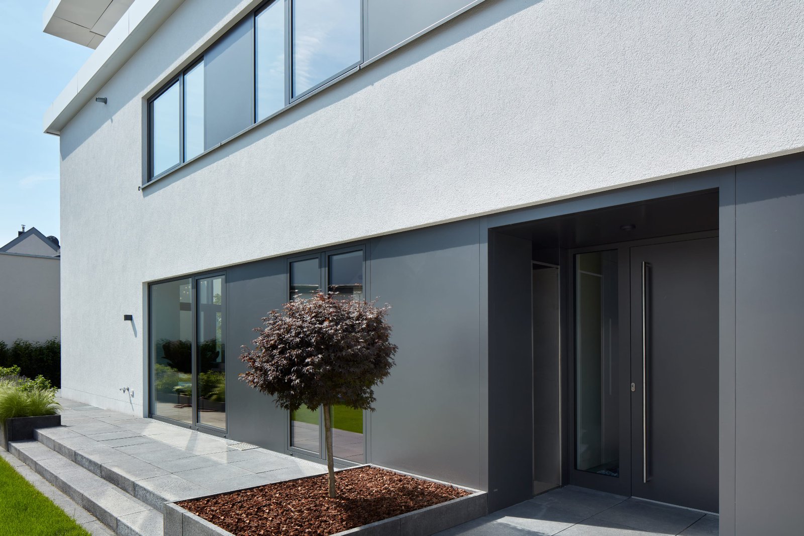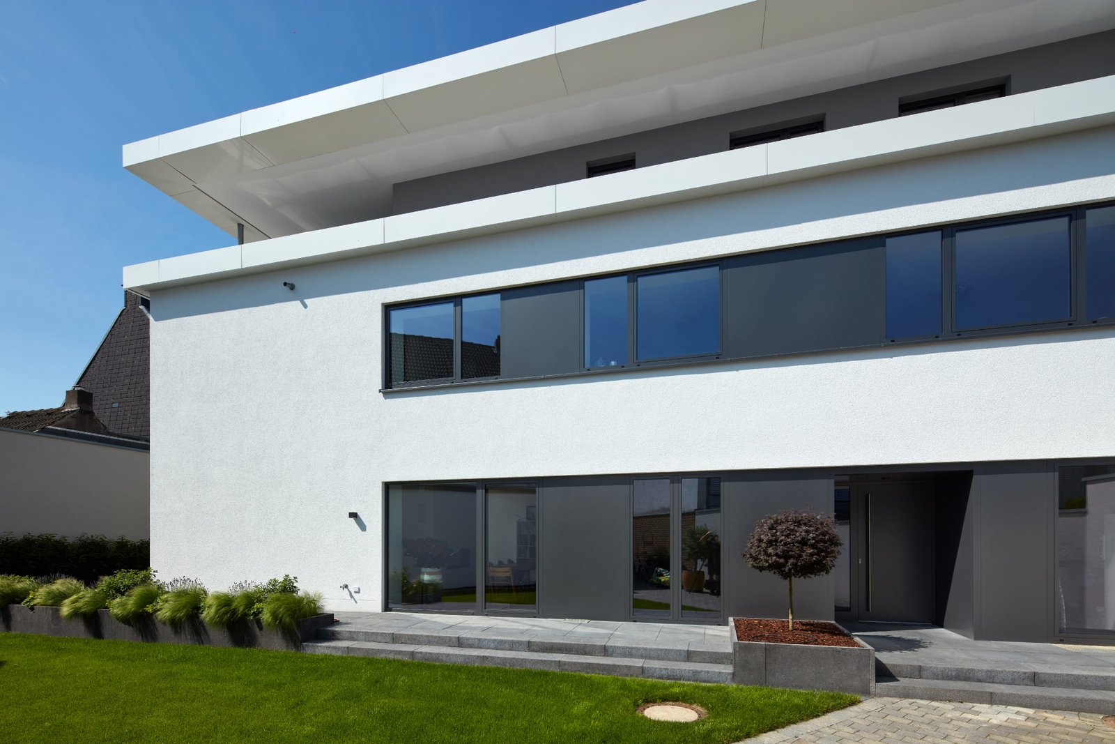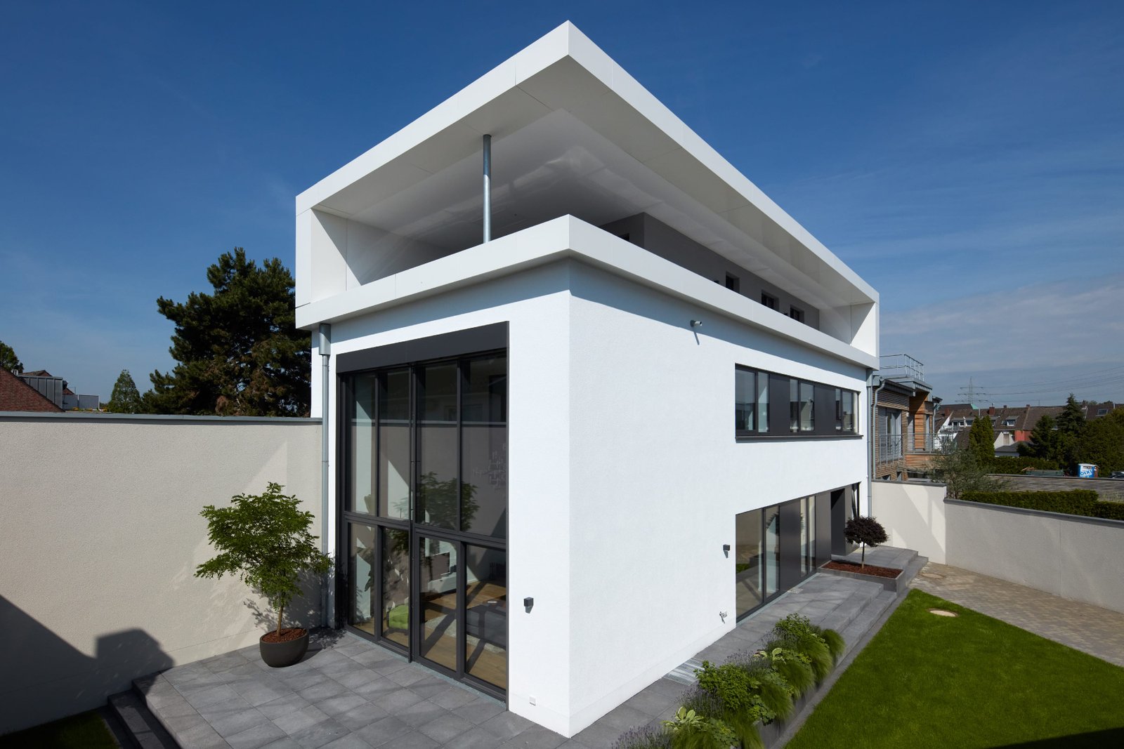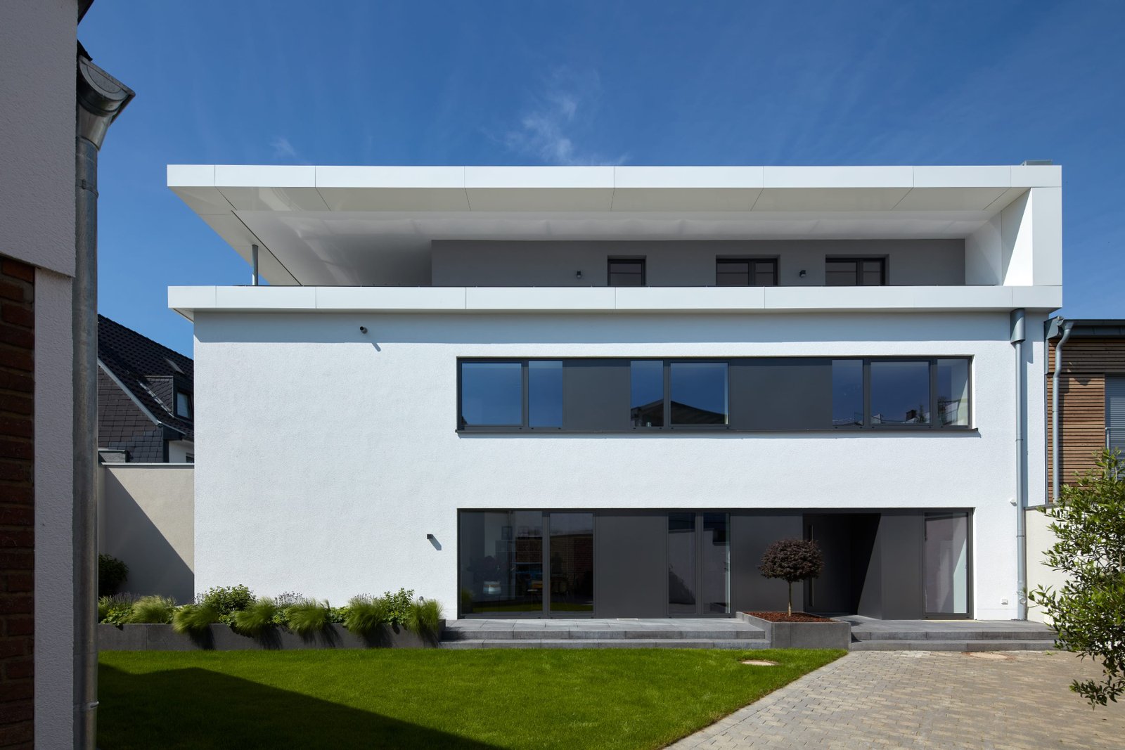 Auf einem umlaufend grenzständig bebauten Grundstück in Düsseldorf mit Gebäudeteilen aus dem 19. und 20. Jahrhundert bestand aufgrund der ruhigen Hinterhoflage der Wunsch, ein hochwertiges Wohnhaus zu generieren. Durch Abbruch von einer Vielzahl an Nebengebäuden wurde das eigentliche Werkstattgebäude freigestellt. Dadurch wurde eine Innenhoffläche geschaffen, welche nun als Garten für das Wohnhaus dient.