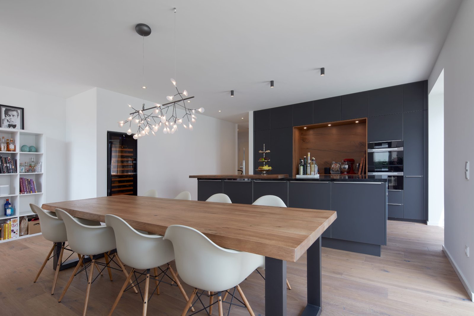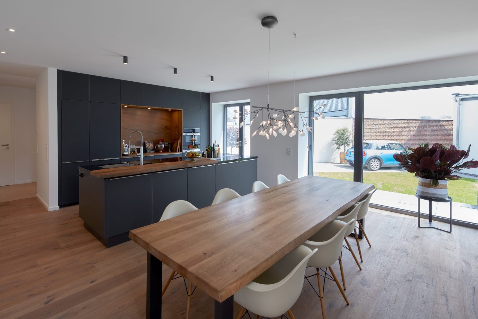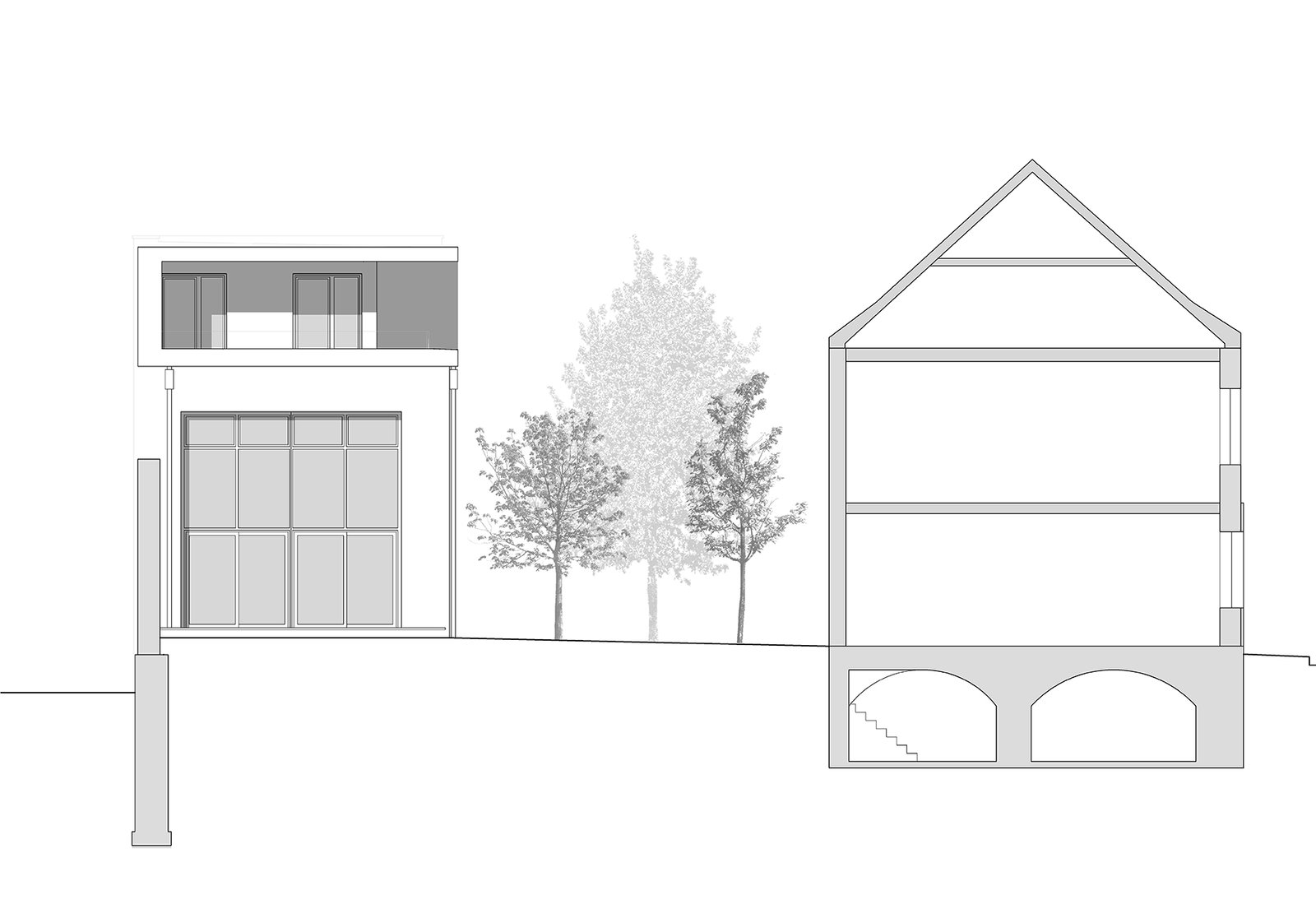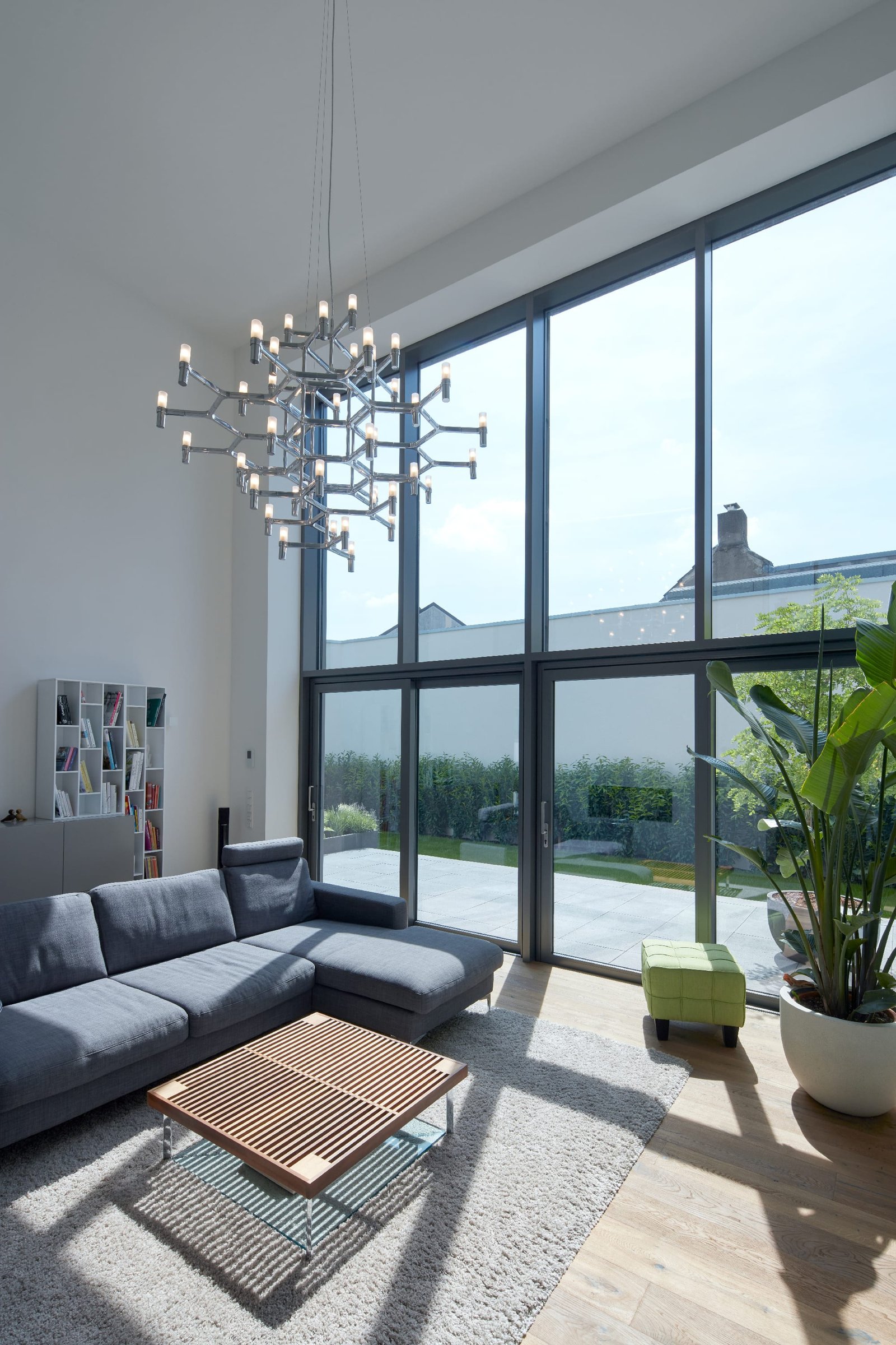 Auf einem umlaufend grenzständig bebauten Grundstück in Düsseldorf mit Gebäudeteilen aus dem 19. und 20. Jahrhundert bestand aufgrund der ruhigen Hinterhoflage der Wunsch, ein hochwertiges Wohnhaus zu generieren. Durch Abbruch von einer Vielzahl an Nebengebäuden wurde das eigentliche Werkstattgebäude freigestellt. Dadurch wurde eine Innenhoffläche geschaffen, welche nun als Garten für das Wohnhaus dient.