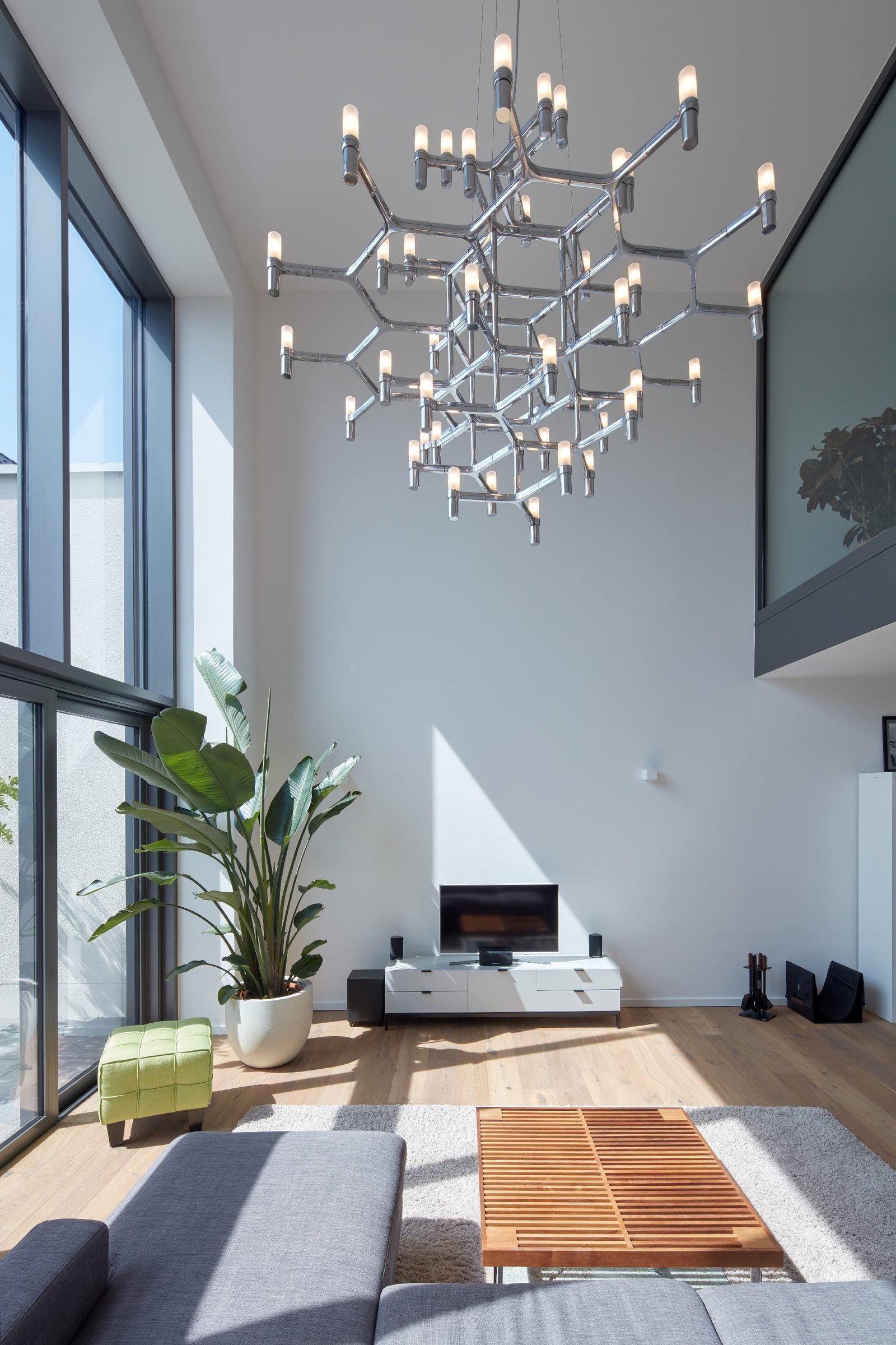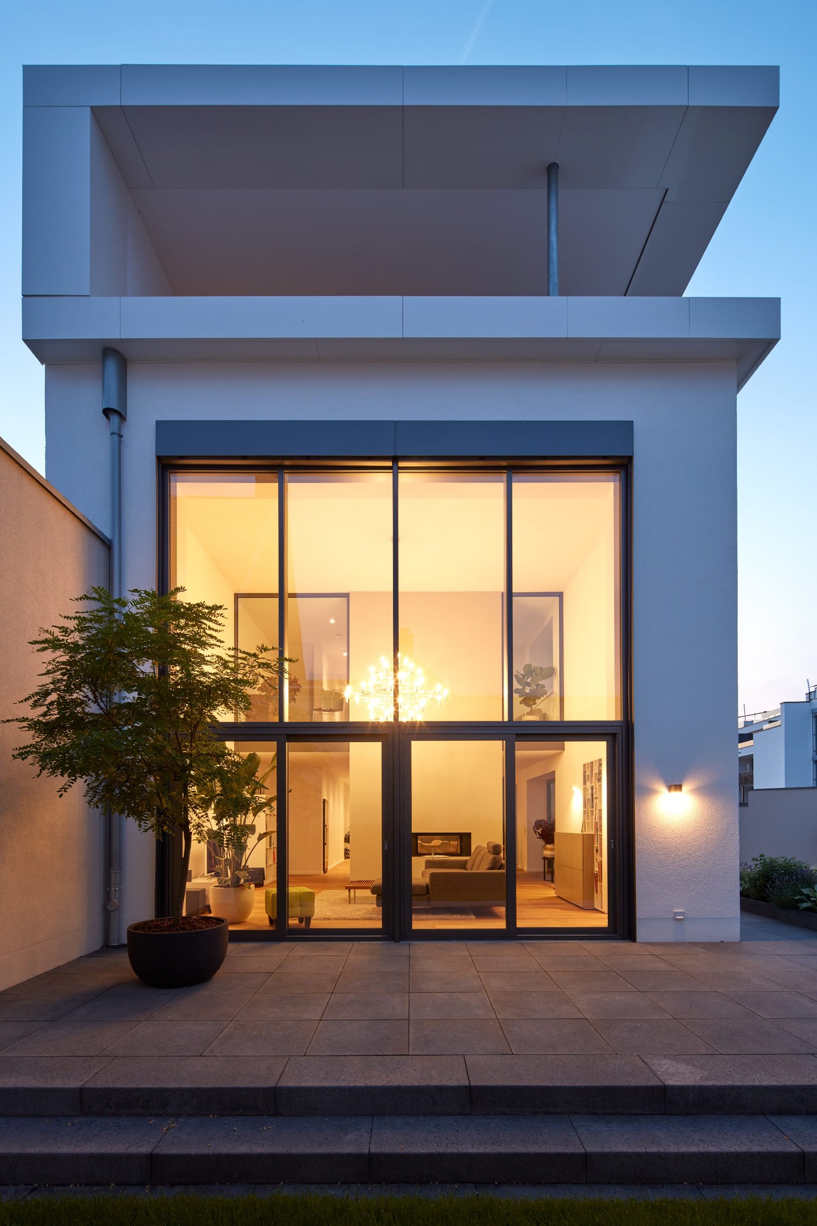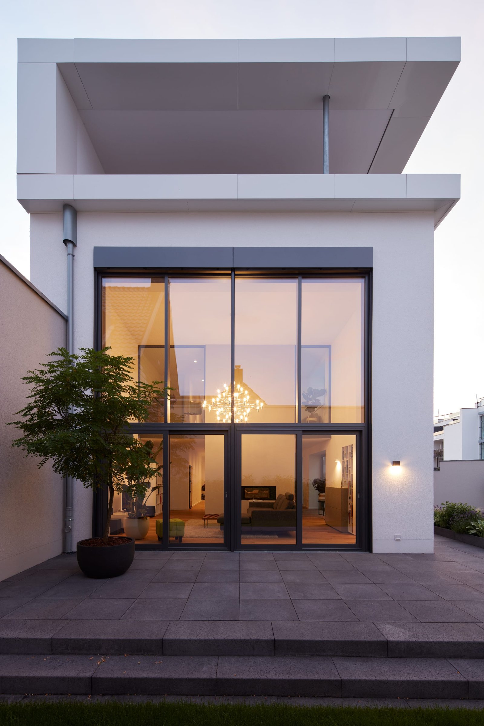 Das Bestandsgebäude an sich wurde in Gänze entkernt, aufgestockt, mit einer neuen Stahlbetondecken und einer neuen Treppenerschließung versehen. Durch die großformatigen Fassadenöffnungen und die Realisierung eines zweigeschossigen Wohnraums, konnte dem Gebäude trotz der engen Innenhofsituation eine großzügige Anmutung verliehen werden.